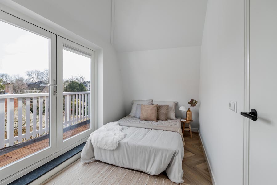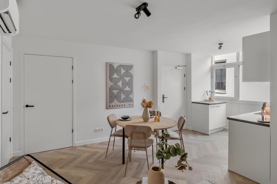 Aan de Baanstraat 6-8 in Alkmaar heeft Groei Vastgoed een leegstaand en vervallen pand getransformeerd tot drie karaktervolle 2-kamerappartementen. Bij deze herontwikkeling stond het behoud van authentieke elementen centraal. Originele details, zoals de en-suite deuren en zichtbare houten spanten, zijn zorgvuldig gerestaureerd en gecombineerd met hedendaags wooncomfort.
